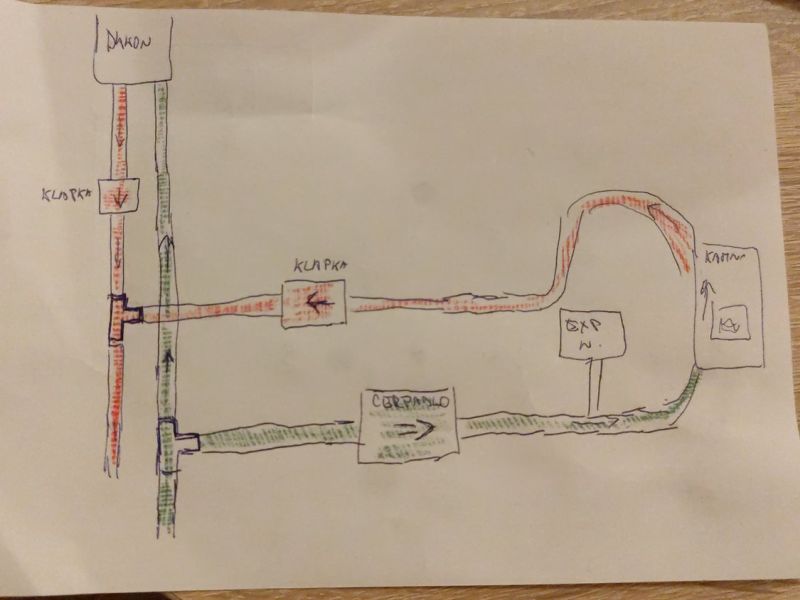 Dobrý den, koupil jsem chalupu, kde byl odpojen plynový kotel a topilo se pouze kamny. Nyní jsem plyn opět připojil a snažím se to zprovoznit... Nechal jsem od topenáře dodělat klapku pod kotel a expanzní nádobu, žádná tam nebyla a tlak lítal. Vše řídím přes immax...tedy pravidlo pokud je teplota pod 22 a oběhového on, kotel topení off, problém nastane, pokud kotel vypne topení, ale oběhové kotle ještě jede a do toho sepne čerpadlo...podle spotřeby vidím, že oběhové místo 8W bere jen 4 a kotel taky drnčí...teplota výměníku jede tak vysoko, že přes pojistný ventil mi to udělalo oblaky páry...běžel jsem natvrdo vypnout plynový kotel, čerpadlo se snažilo hrabat, ale byla tam jen pár, takže jsem honem musel dopouštět vodu a odvzdušňovat, aby kamna nepraskla. Topenář neví, kde je problém, potřebují to vyřešit...